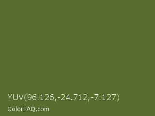 YUV 96.126,-24.712,-7.127 Color is a normal green color and the nearest color is Dark Olive Green #556b2f. Hex code #586e2e and RGB value is rgb(88,110,46). In RGB color space, this color is composed of 35% red, 43% green, 18% blue, In CMYK color space, this color is composed of 20% cyan, 0% magenta, 58% yellow , 57% black , In HSL color space, this color has a hue angle of 81° , 41% saturation and 31% lightness.