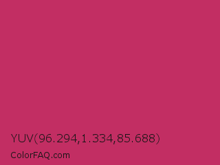 YUV 96.294,1.334,85.688 Color is a normal rose color and the nearest color is Hibiscus #b6316c. Hex code #c22e63 and RGB value is rgb(194,46,99). In RGB color space, this color is composed of 76% red, 18% green, 39% blue, In CMYK color space, this color is composed of 0% cyan, 76% magenta, 49% yellow , 24% black , In HSL color space, this color has a hue angle of 339° , 62% saturation and 47% lightness.