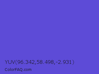YUV 96.342,58.498,-2.931 Color is a normal indigo color and the nearest color is Majorelle Blue #6050dc. Hex code #5d4bd7 and RGB value is rgb(93,75,215). In RGB color space, this color is composed of 36% red, 29% green, 84% blue, In CMYK color space, this color is composed of 57% cyan, 65% magenta, 0% yellow , 16% black , In HSL color space, this color has a hue angle of 248° , 64% saturation and 57% lightness.