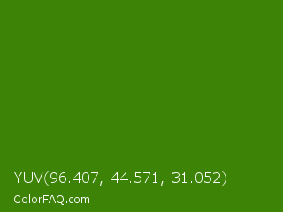 YUV 96.407,-44.571,-31.052 Color is a dark green color and the nearest color is La Palma #368716. Hex code #3d8406 and RGB value is rgb(61,132,6). In RGB color space, this color is composed of 24% red, 52% green, 2% blue, In CMYK color space, this color is composed of 54% cyan, 0% magenta, 95% yellow , 48% black , In HSL color space, this color has a hue angle of 94° , 91% saturation and 27% lightness.
