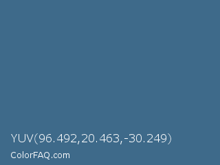 YUV 96.492,20.463,-30.249 Color is a normal blue color and the nearest color is Queen Blue #436b95. Hex code #3e6a8a and RGB value is rgb(62,106,138). In RGB color space, this color is composed of 24% red, 42% green, 54% blue, In CMYK color space, this color is composed of 55% cyan, 23% magenta, 0% yellow , 46% black , In HSL color space, this color has a hue angle of 205° , 38% saturation and 39% lightness.