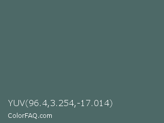 YUV 96.4,3.254,-17.014 Color is a normal cyan color and the nearest color is Stormcloud #4f666a. Hex code #4d6967 and RGB value is rgb(77,105,103). In RGB color space, this color is composed of 30% red, 41% green, 40% blue, In CMYK color space, this color is composed of 27% cyan, 0% magenta, 2% yellow , 59% black , In HSL color space, this color has a hue angle of 176° , 15% saturation and 36% lightness.