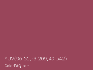 YUV 96.51,-3.209,49.542 Color is a normal red color and the nearest color is Vin Rouge #983d61. Hex code #99455a and RGB value is rgb(153,69,90). In RGB color space, this color is composed of 60% red, 27% green, 35% blue, In CMYK color space, this color is composed of 0% cyan, 55% magenta, 41% yellow , 40% black , In HSL color space, this color has a hue angle of 345° , 38% saturation and 44% lightness.