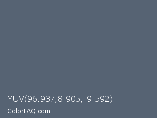 YUV 96.937,8.905,-9.592 Color is a normal blue color and the nearest color is Black Coral #54626f. Hex code #566373 and RGB value is rgb(86,99,115). In RGB color space, this color is composed of 34% red, 39% green, 45% blue, In CMYK color space, this color is composed of 25% cyan, 14% magenta, 0% yellow , 55% black , In HSL color space, this color has a hue angle of 213° , 14% saturation and 39% lightness.