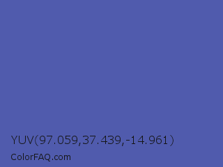 YUV 97.059,37.439,-14.961 Color is a normal blue color and the nearest color is Liberty #545aa7. Hex code #505bad and RGB value is rgb(80,91,173). In RGB color space, this color is composed of 31% red, 36% green, 68% blue, In CMYK color space, this color is composed of 54% cyan, 47% magenta, 0% yellow , 32% black , In HSL color space, this color has a hue angle of 233° , 37% saturation and 50% lightness.