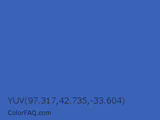 YUV 97.317,42.735,-33.604 Color is a normal blue color and the nearest color is San Marino #456cac. Hex code #3b64b8 and RGB value is rgb(59,100,184). In RGB color space, this color is composed of 23% red, 39% green, 72% blue, In CMYK color space, this color is composed of 68% cyan, 46% magenta, 0% yellow , 28% black , In HSL color space, this color has a hue angle of 220° , 51% saturation and 48% lightness.