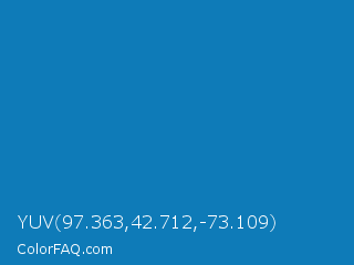 YUV 97.363,42.712,-73.109 Color is a normal blue color and the nearest color is Star Command Blue #007bb8. Hex code #0e7bb8 and RGB value is rgb(14,123,184). In RGB color space, this color is composed of 5% red, 48% green, 72% blue, In CMYK color space, this color is composed of 92% cyan, 33% magenta, 0% yellow , 28% black , In HSL color space, this color has a hue angle of 202° , 86% saturation and 39% lightness.