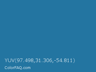 YUV 97.498,31.306,-54.811 Color is a normal blue color and the nearest color is Jelly Bean #297b9a. Hex code #2375a1 and RGB value is rgb(35,117,161). In RGB color space, this color is composed of 14% red, 46% green, 63% blue, In CMYK color space, this color is composed of 78% cyan, 27% magenta, 0% yellow , 37% black , In HSL color space, this color has a hue angle of 201° , 64% saturation and 38% lightness.