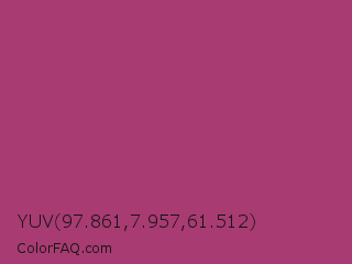 YUV 97.861,7.957,61.512 Color is a normal rose color and the nearest color is Maximum Red Purple #a63a79. Hex code #a83b72 and RGB value is rgb(168,59,114). In RGB color space, this color is composed of 66% red, 23% green, 45% blue, In CMYK color space, this color is composed of 0% cyan, 65% magenta, 32% yellow , 34% black , In HSL color space, this color has a hue angle of 330° , 48% saturation and 45% lightness.