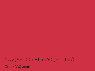 YUV 98.006,-15.286,96.465 Color is a normal red color and the nearest color is Brick Red #c62d42. Hex code #d03043 and RGB value is rgb(208,48,67). In RGB color space, this color is composed of 82% red, 19% green, 26% blue, In CMYK color space, this color is composed of 0% cyan, 77% magenta, 68% yellow , 18% black , In HSL color space, this color has a hue angle of 353° , 63% saturation and 50% lightness.