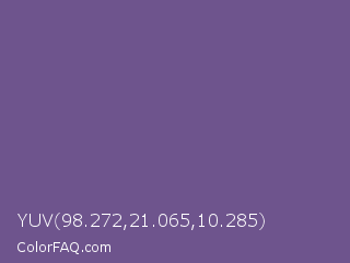 YUV 98.272,21.065,10.285 Color is a normal violet color and the nearest color is Dark Lavender #734f96. Hex code #6e548d and RGB value is rgb(110,84,141). In RGB color space, this color is composed of 43% red, 33% green, 55% blue, In CMYK color space, this color is composed of 22% cyan, 40% magenta, 0% yellow , 45% black , In HSL color space, this color has a hue angle of 267° , 25% saturation and 44% lightness.