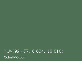 YUV 99.457,-6.634,-18.818 Color is a normal green color and the nearest color is Finlandia #556d56. Hex code #4e7156 and RGB value is rgb(78,113,86). In RGB color space, this color is composed of 31% red, 44% green, 34% blue, In CMYK color space, this color is composed of 31% cyan, 0% magenta, 24% yellow , 56% black , In HSL color space, this color has a hue angle of 134° , 18% saturation and 37% lightness.