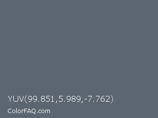 YUV 99.851,5.989,-7.762 Color is a normal blue color and the nearest color is Shuttle Gray #5f6672. Hex code #5b6670 and RGB value is rgb(91,102,112). In RGB color space, this color is composed of 36% red, 40% green, 44% blue, In CMYK color space, this color is composed of 19% cyan, 9% magenta, 0% yellow , 56% black , In HSL color space, this color has a hue angle of 209° , 10% saturation and 40% lightness.