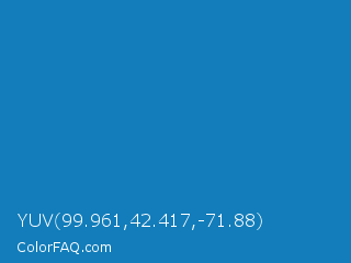 YUV 99.961,42.417,-71.88 Color is a normal blue color and the nearest color is Cyan Cornflower Blue #188bc2. Hex code #127dba and RGB value is rgb(18,125,186). In RGB color space, this color is composed of 7% red, 49% green, 73% blue, In CMYK color space, this color is composed of 90% cyan, 33% magenta, 0% yellow , 27% black , In HSL color space, this color has a hue angle of 202° , 82% saturation and 40% lightness.