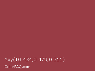 Yxy 10.434,0.479,0.315 Color is a normal red color and the nearest color is Smoky Topaz #933d41. Hex code #993c45 and RGB value is rgb(153,60,69). In RGB color space, this color is composed of 60% red, 24% green, 27% blue, In CMYK color space, this color is composed of 0% cyan, 61% magenta, 55% yellow , 40% black , In HSL color space, this color has a hue angle of 354° , 44% saturation and 42% lightness.