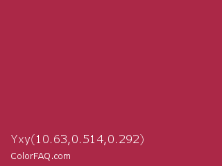 Yxy 10.63,0.514,0.292 Color is a normal red color and the nearest color is Amaranth Purple #ab274f. Hex code #ab2847 and RGB value is rgb(171,40,71). In RGB color space, this color is composed of 67% red, 16% green, 28% blue, In CMYK color space, this color is composed of 0% cyan, 77% magenta, 58% yellow , 33% black , In HSL color space, this color has a hue angle of 346° , 62% saturation and 41% lightness.