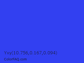 Yxy 10.756,0.167,0.094 Color is a normal blue color and the nearest color is Palatinate Blue #273be2. Hex code #3240f1 and RGB value is rgb(50,64,241). In RGB color space, this color is composed of 20% red, 25% green, 95% blue, In CMYK color space, this color is composed of 79% cyan, 73% magenta, 0% yellow , 5% black , In HSL color space, this color has a hue angle of 236° , 87% saturation and 57% lightness.