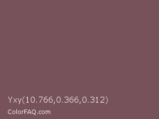 Yxy 10.766,0.366,0.312 Color is a normal red color and the nearest color is Russett #755a57. Hex code #78525a and RGB value is rgb(120,82,90). In RGB color space, this color is composed of 47% red, 32% green, 35% blue, In CMYK color space, this color is composed of 0% cyan, 32% magenta, 25% yellow , 53% black , In HSL color space, this color has a hue angle of 347° , 19% saturation and 40% lightness.