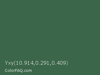 Yxy 10.914,0.291,0.409 Color is a normal green color and the nearest color is Killarney #3a6a47. Hex code #3b6649 and RGB value is rgb(59,102,73). In RGB color space, this color is composed of 23% red, 40% green, 29% blue, In CMYK color space, this color is composed of 42% cyan, 0% magenta, 28% yellow , 60% black , In HSL color space, this color has a hue angle of 140° , 27% saturation and 32% lightness.