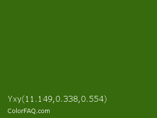 Yxy 11.149,0.338,0.554 Color is a dark green color and the nearest color is Dell #396413. Hex code #376a0d and RGB value is rgb(55,106,13). In RGB color space, this color is composed of 22% red, 42% green, 5% blue, In CMYK color space, this color is composed of 48% cyan, 0% magenta, 88% yellow , 58% black , In HSL color space, this color has a hue angle of 93° , 78% saturation and 23% lightness.
