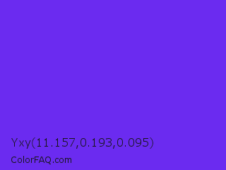 Yxy 11.157,0.193,0.095 Color is a normal indigo color and the nearest color is Han Purple #5218fa. Hex code #6b2bf0 and RGB value is rgb(107,43,240). In RGB color space, this color is composed of 42% red, 17% green, 94% blue, In CMYK color space, this color is composed of 55% cyan, 82% magenta, 0% yellow , 6% black , In HSL color space, this color has a hue angle of 259° , 87% saturation and 55% lightness.