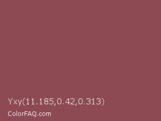Yxy 11.185,0.42,0.313 Color is a normal red color and the nearest color is Copper Rust #944747. Hex code #8d4a53 and RGB value is rgb(141,74,83). In RGB color space, this color is composed of 55% red, 29% green, 33% blue, In CMYK color space, this color is composed of 0% cyan, 48% magenta, 41% yellow , 45% black , In HSL color space, this color has a hue angle of 352° , 31% saturation and 42% lightness.
