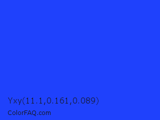 Yxy 11.1,0.161,0.089 Color is a normal blue color and the nearest color is Palatinate Blue #273be2. Hex code #1f41fc and RGB value is rgb(31,65,252). In RGB color space, this color is composed of 12% red, 25% green, 99% blue, In CMYK color space, this color is composed of 88% cyan, 74% magenta, 0% yellow , 1% black , In HSL color space, this color has a hue angle of 231° , 97% saturation and 55% lightness.