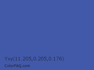 Yxy 11.205,0.205,0.176 Color is a normal blue color and the nearest color is Liberty #545aa7. Hex code #4259aa and RGB value is rgb(66,89,170). In RGB color space, this color is composed of 26% red, 35% green, 67% blue, In CMYK color space, this color is composed of 61% cyan, 48% magenta, 0% yellow , 33% black , In HSL color space, this color has a hue angle of 227° , 44% saturation and 46% lightness.