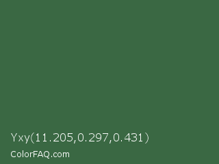Yxy 11.205,0.297,0.431 Color is a normal green color and the nearest color is Killarney #3a6a47. Hex code #3a6843 and RGB value is rgb(58,104,67). In RGB color space, this color is composed of 23% red, 41% green, 26% blue, In CMYK color space, this color is composed of 44% cyan, 0% magenta, 36% yellow , 59% black , In HSL color space, this color has a hue angle of 132° , 28% saturation and 32% lightness.