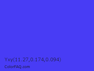 Yxy 11.27,0.174,0.094 Color is a normal indigo color and the nearest color is Han Purple #5218fa. Hex code #483cf5 and RGB value is rgb(72,60,245). In RGB color space, this color is composed of 28% red, 24% green, 96% blue, In CMYK color space, this color is composed of 71% cyan, 76% magenta, 0% yellow , 4% black , In HSL color space, this color has a hue angle of 244° , 90% saturation and 60% lightness.