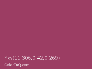 Yxy 11.306,0.42,0.269 Color is a normal rose color and the nearest color is Vin Rouge #983d61. Hex code #9c3d63 and RGB value is rgb(156,61,99). In RGB color space, this color is composed of 61% red, 24% green, 39% blue, In CMYK color space, this color is composed of 0% cyan, 61% magenta, 37% yellow , 39% black , In HSL color space, this color has a hue angle of 336° , 44% saturation and 43% lightness.