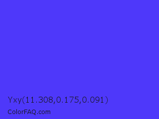 Yxy 11.308,0.175,0.091 Color is a normal indigo color and the nearest color is Han Purple #5218fa. Hex code #4e38fa and RGB value is rgb(78,56,250). In RGB color space, this color is composed of 31% red, 22% green, 98% blue, In CMYK color space, this color is composed of 69% cyan, 78% magenta, 0% yellow , 2% black , In HSL color space, this color has a hue angle of 247° , 95% saturation and 60% lightness.