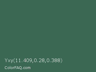 Yxy 11.409,0.28,0.388 Color is a normal green color and the nearest color is Killarney #3a6a47. Hex code #3a6852 and RGB value is rgb(58,104,82). In RGB color space, this color is composed of 23% red, 41% green, 32% blue, In CMYK color space, this color is composed of 44% cyan, 0% magenta, 21% yellow , 59% black , In HSL color space, this color has a hue angle of 151° , 28% saturation and 32% lightness.