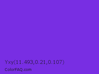 Yxy 11.493,0.21,0.107 Color is a normal violet color and the nearest color is Blue Violet #8a2be2. Hex code #782ee3 and RGB value is rgb(120,46,227). In RGB color space, this color is composed of 47% red, 18% green, 89% blue, In CMYK color space, this color is composed of 47% cyan, 80% magenta, 0% yellow , 11% black , In HSL color space, this color has a hue angle of 265° , 76% saturation and 54% lightness.