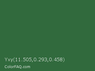 Yxy 11.505,0.293,0.458 Color is a normal green color and the nearest color is Killarney #3a6a47. Hex code #316b3d and RGB value is rgb(49,107,61). In RGB color space, this color is composed of 19% red, 42% green, 24% blue, In CMYK color space, this color is composed of 54% cyan, 0% magenta, 43% yellow , 58% black , In HSL color space, this color has a hue angle of 132° , 37% saturation and 31% lightness.
