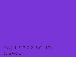 Yxy 11.517,0.218,0.117 Color is a normal violet color and the nearest color is Blue Violet #8a2be2. Hex code #7935d7 and RGB value is rgb(121,53,215). In RGB color space, this color is composed of 47% red, 21% green, 84% blue, In CMYK color space, this color is composed of 44% cyan, 75% magenta, 0% yellow , 16% black , In HSL color space, this color has a hue angle of 265° , 67% saturation and 53% lightness.