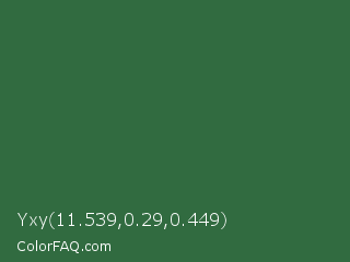 Yxy 11.539,0.29,0.449 Color is a normal green color and the nearest color is Killarney #3a6a47. Hex code #316b40 and RGB value is rgb(49,107,64). In RGB color space, this color is composed of 19% red, 42% green, 25% blue, In CMYK color space, this color is composed of 54% cyan, 0% magenta, 40% yellow , 58% black , In HSL color space, this color has a hue angle of 136° , 37% saturation and 31% lightness.
