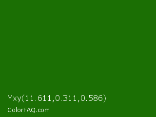 Yxy 11.611,0.311,0.586 Color is a dark green color and the nearest color is Japanese Laurel #0a6906. Hex code #1b6f04 and RGB value is rgb(27,111,4). In RGB color space, this color is composed of 11% red, 44% green, 2% blue, In CMYK color space, this color is composed of 76% cyan, 0% magenta, 96% yellow , 56% black , In HSL color space, this color has a hue angle of 107° , 93% saturation and 23% lightness.
