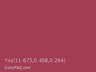 Yxy 11.675,0.458,0.294 Color is a normal red color and the nearest color is Night Shadz #aa375a. Hex code #a23d55 and RGB value is rgb(162,61,85). In RGB color space, this color is composed of 64% red, 24% green, 33% blue, In CMYK color space, this color is composed of 0% cyan, 62% magenta, 48% yellow , 36% black , In HSL color space, this color has a hue angle of 346° , 45% saturation and 44% lightness.