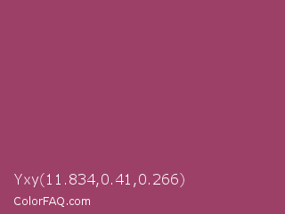 Yxy 11.834,0.41,0.266 Color is a normal rose color and the nearest color is Rouge #a23b6c. Hex code #9d4068 and RGB value is rgb(157,64,104). In RGB color space, this color is composed of 62% red, 25% green, 41% blue, In CMYK color space, this color is composed of 0% cyan, 59% magenta, 34% yellow , 38% black , In HSL color space, this color has a hue angle of 334° , 42% saturation and 43% lightness.