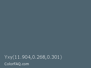 Yxy 11.904,0.268,0.301 Color is a normal blue color and the nearest color is Deep Space Sparkle #4a646c. Hex code #4e6470 and RGB value is rgb(78,100,112). In RGB color space, this color is composed of 31% red, 39% green, 44% blue, In CMYK color space, this color is composed of 30% cyan, 11% magenta, 0% yellow , 56% black , In HSL color space, this color has a hue angle of 201° , 18% saturation and 37% lightness.