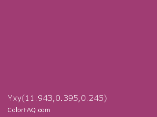 Yxy 11.943,0.395,0.245 Color is a normal magenta color and the nearest color is Rouge #a23b6c. Hex code #a03c73 and RGB value is rgb(160,60,115). In RGB color space, this color is composed of 63% red, 24% green, 45% blue, In CMYK color space, this color is composed of 0% cyan, 63% magenta, 28% yellow , 37% black , In HSL color space, this color has a hue angle of 327° , 45% saturation and 43% lightness.