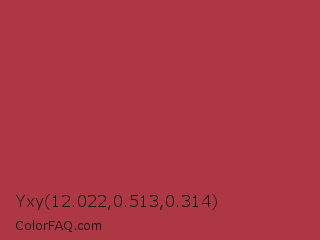 Yxy 12.022,0.513,0.314 Color is a normal red color and the nearest color is Medium Carmine #af4035. Hex code #ad3743 and RGB value is rgb(173,55,67). In RGB color space, this color is composed of 68% red, 22% green, 26% blue, In CMYK color space, this color is composed of 0% cyan, 68% magenta, 61% yellow , 32% black , In HSL color space, this color has a hue angle of 354° , 52% saturation and 45% lightness.