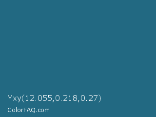 Yxy 12.055,0.218,0.27 Color is a normal blue color and the nearest color is Blue Sapphire #126180. Hex code #226982 and RGB value is rgb(34,105,130). In RGB color space, this color is composed of 13% red, 41% green, 51% blue, In CMYK color space, this color is composed of 74% cyan, 19% magenta, 0% yellow , 49% black , In HSL color space, this color has a hue angle of 196° , 59% saturation and 32% lightness.