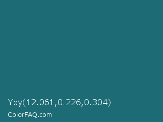 Yxy 12.061,0.226,0.304 Color is a dark cyan color and the nearest color is Genoa #15736b. Hex code #1d6b75 and RGB value is rgb(29,107,117). In RGB color space, this color is composed of 11% red, 42% green, 46% blue, In CMYK color space, this color is composed of 75% cyan, 9% magenta, 0% yellow , 54% black , In HSL color space, this color has a hue angle of 187° , 60% saturation and 29% lightness.