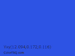 Yxy 12.094,0.172,0.116 Color is a normal blue color and the nearest color is Palatinate Blue #273be2. Hex code #2c52e3 and RGB value is rgb(44,82,227). In RGB color space, this color is composed of 17% red, 32% green, 89% blue, In CMYK color space, this color is composed of 81% cyan, 64% magenta, 0% yellow , 11% black , In HSL color space, this color has a hue angle of 228° , 77% saturation and 53% lightness.