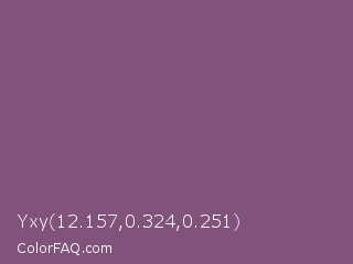 Yxy 12.157,0.324,0.251 Color is a normal magenta color and the nearest color is Razzmic Berry #8d4e85. Hex code #81527c and RGB value is rgb(129,82,124). In RGB color space, this color is composed of 51% red, 32% green, 49% blue, In CMYK color space, this color is composed of 0% cyan, 36% magenta, 4% yellow , 49% black , In HSL color space, this color has a hue angle of 306° , 22% saturation and 41% lightness.