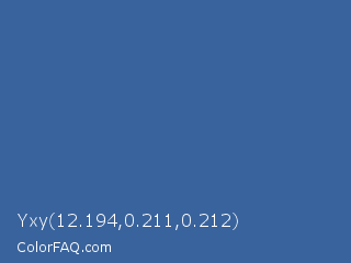 Yxy 12.194,0.211,0.212 Color is a normal blue color and the nearest color is Azure #315ba1. Hex code #39639c and RGB value is rgb(57,99,156). In RGB color space, this color is composed of 22% red, 39% green, 61% blue, In CMYK color space, this color is composed of 63% cyan, 37% magenta, 0% yellow , 39% black , In HSL color space, this color has a hue angle of 215° , 46% saturation and 42% lightness.