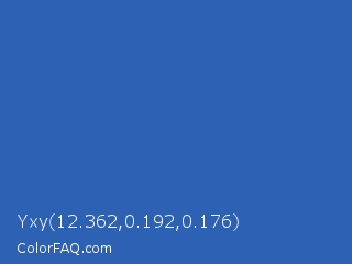 Yxy 12.362,0.192,0.176 Color is a normal blue color and the nearest color is Cerulean Blue #2a52be. Hex code #2c61b3 and RGB value is rgb(44,97,179). In RGB color space, this color is composed of 17% red, 38% green, 70% blue, In CMYK color space, this color is composed of 75% cyan, 46% magenta, 0% yellow , 30% black , In HSL color space, this color has a hue angle of 216° , 61% saturation and 44% lightness.