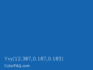 Yxy 12.387,0.187,0.183 Color is a normal blue color and the nearest color is Green Blue #1164b4. Hex code #1464b0 and RGB value is rgb(20,100,176). In RGB color space, this color is composed of 8% red, 39% green, 69% blue, In CMYK color space, this color is composed of 89% cyan, 43% magenta, 0% yellow , 31% black , In HSL color space, this color has a hue angle of 209° , 80% saturation and 38% lightness.